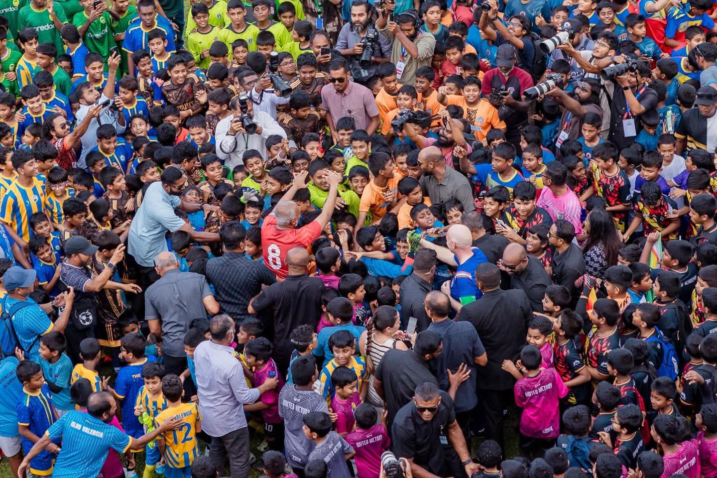 ފުޓްބޯޅައަށް އޮތް ލޯތްބާއި ފޯރި ދައްކާލައި ކުދިކުދި އިންސާނުންތަކެއް ރައީސް ޑރ. މުއިއްޒާއި އިންފަންޓީނިއޯ ވަށާލައިފި
